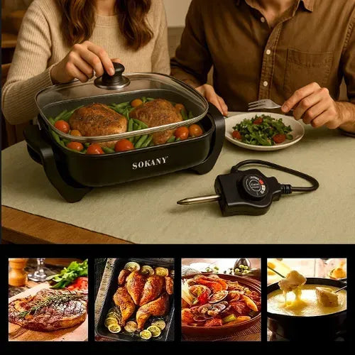 El Sartén multifuncional es la solución perfecta para quienes buscan versatilidad y practicidad en la cocina. Diseñada para facilitar una amplia variedad de preparaciones, este sartén eléctrico combina funciones de asar, freír, cocer y más, todo en un solo electrodoméstico.